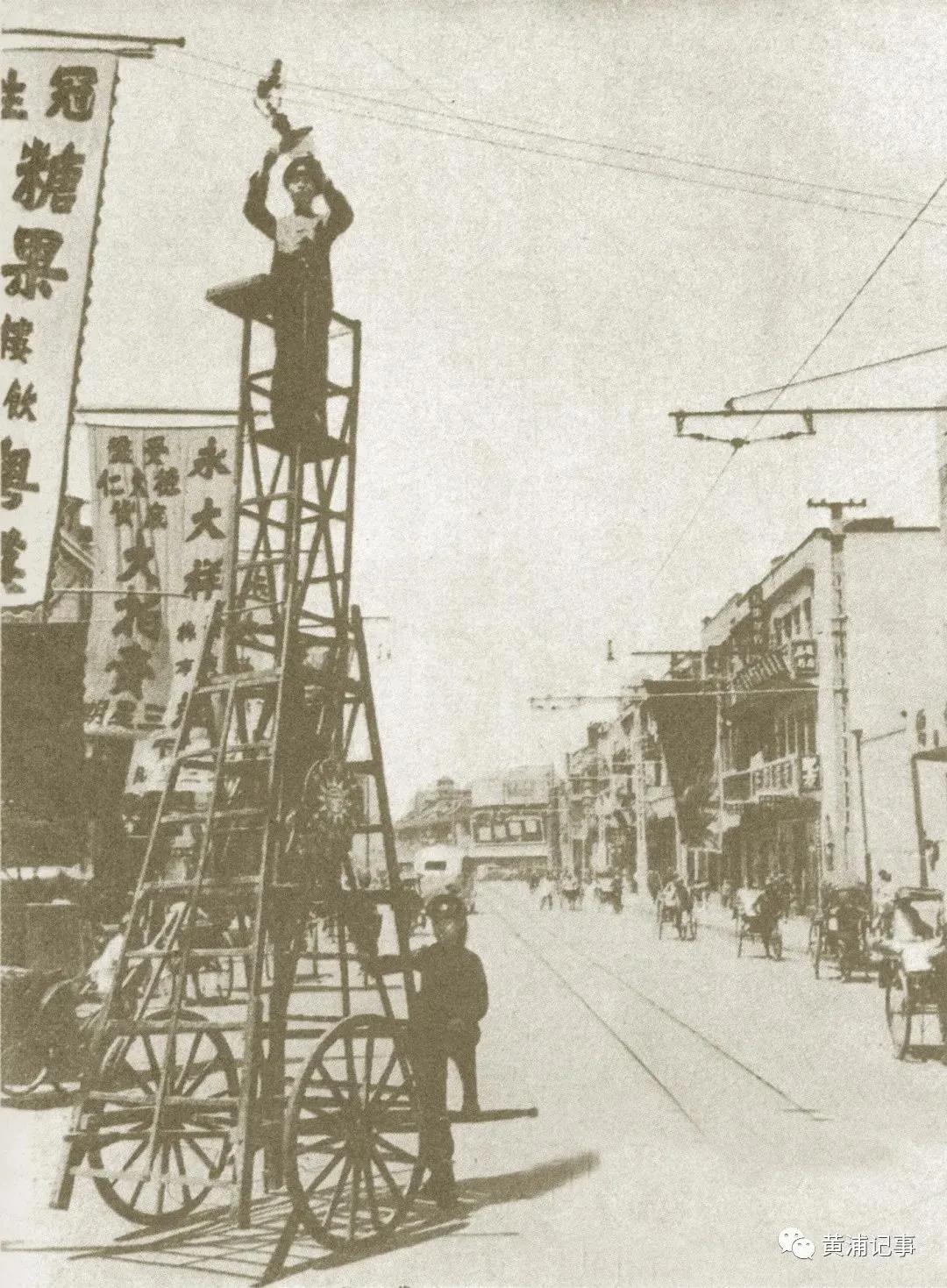 20世紀初南京路上(shàng)的電(diàn)燈,上(shàng)為(wèi)即将淘汰的弧光燈,下為(wèi)正準備安裝的新式白熾燈